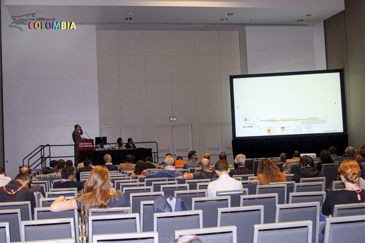 La primera sesión convocada por el SGC, "T13B. New Advances on the Geologic and Tectonic Framework of Colombia and Its Surrounding Regions I", fue oral, la presidió el geólogo y coordinador del Grupo Mapa Geológico de Colombia, Jorge Gómez Tapias y contó con cerca de 80 asistentes.