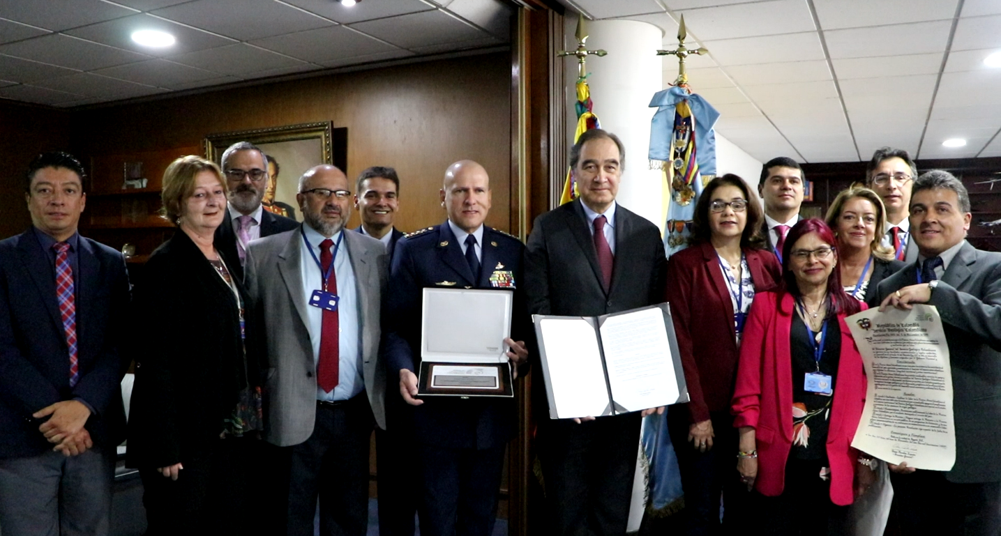 En una ceremonia realizada este viernes en Bogotá, el Servicio Geológico Colombiano (SGC) rindió homenaje a la Fuerza Aérea Colombiana (FAC) por sus 100 años de servicio al país, y muy especialmente por su apoyo desde hace 34 años, con sobrevuelos y toma de imágenes fundamentales para el monitoreo volcánico del país.El reconocimiento, encabezado por el Director General del SGC, Oscar Paredes Zapata, fue recibido por el Comandante de la FAC, General Ramsés Rueda Rueda.Al evento asistieron los Directores Técnicos de Geociencias Básicas, Mario Cuellar; Recursos Minerales, Gloria Prieto; Hidrocarburos, Humberto Fuenzalida; Geoamenazas, (e) Héctor Mora; Asuntos Nucleares, Hernán Olaya; Laboratorios, Hernando Camargo; y Gestión de Información, Margarita Bravo.Igualmente, participaron los Coordinadores de los Observatorios Vulcanológicos y Sismológicos de Manizales, María Luisa Monsalve; Pasto, Diego Gómez y Popayán, Adriana Agudelo. Durante la ceremonia, Paredes Zapata resaltó el importante apoyo que la FAC ha brindado en el diagnóstico y evaluación de la actividad de los volcanes Nevado del Ruiz, Nevado del Huila, Sotará, Puracé y Galeras, entre otros.Igualmente, honró la memoria del personal de la FAC que ha perdido la vida en el cumplimiento de esta misión.